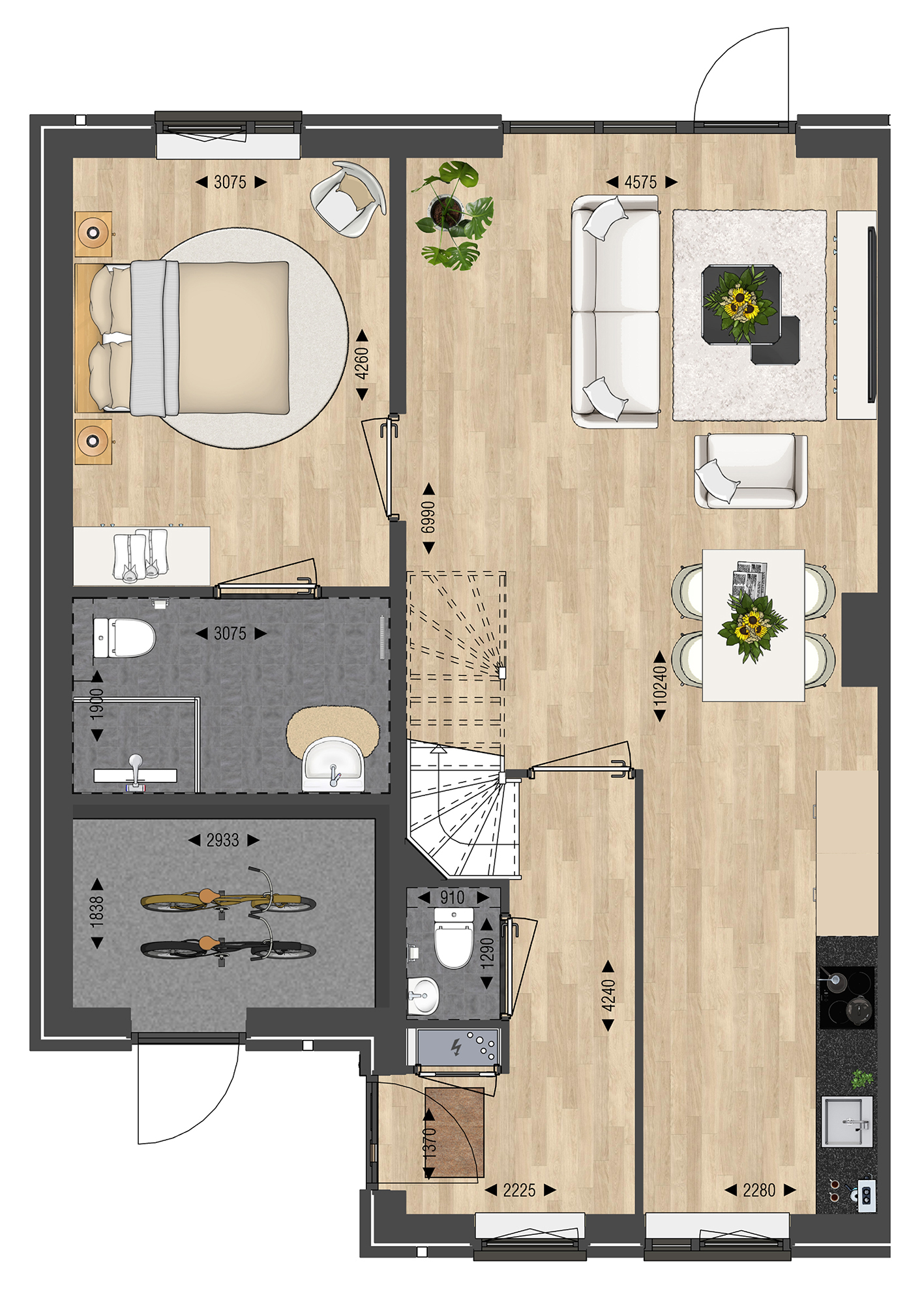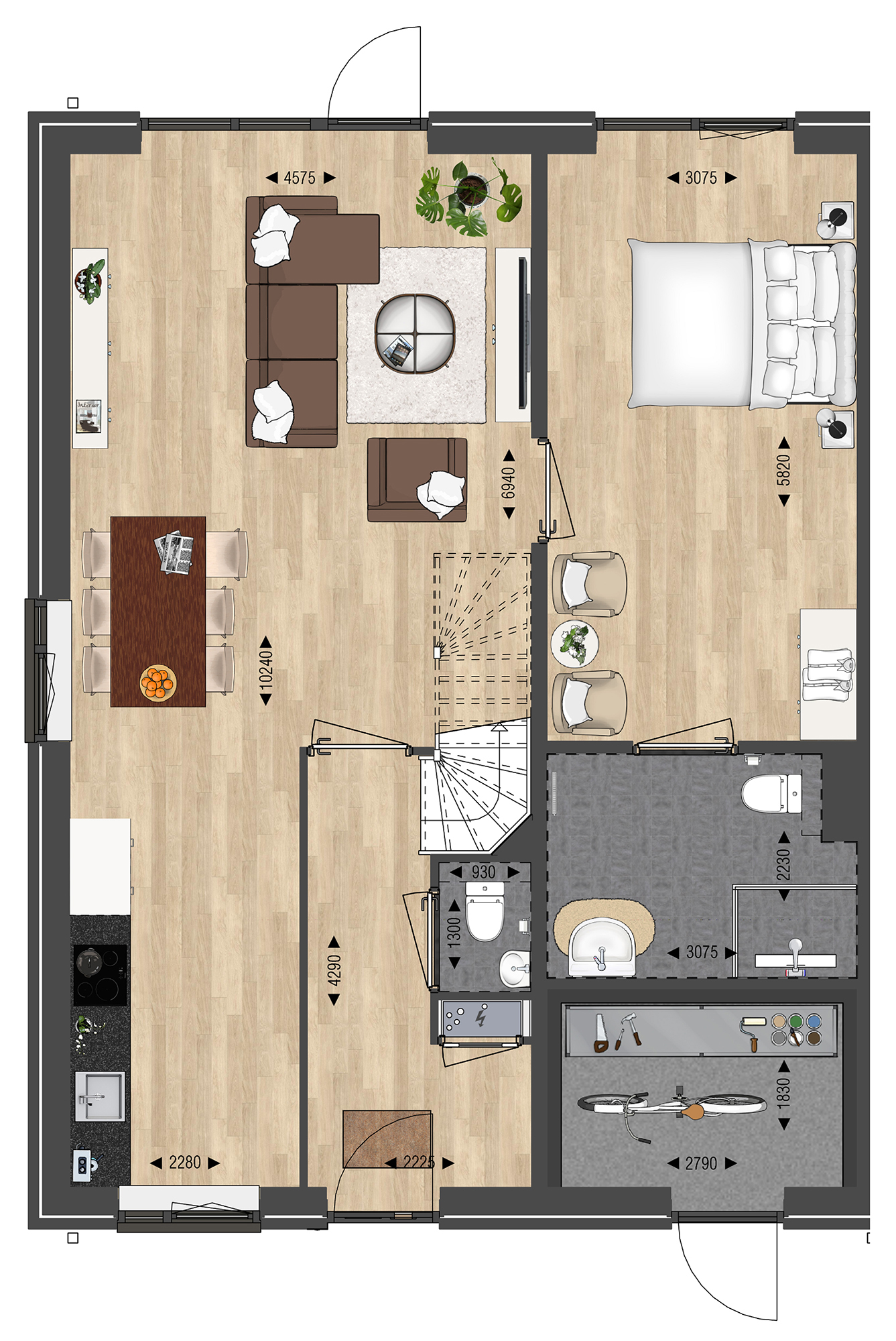Het woonoppervlak is ca. 156-186 m2. De kavels variëren vanaf ca. 200 tot ca. 338 m2. Deze levensloopbestendige woningen hebben een riante breedtemaat. Deze woningen bieden de mogelijkheid voor een multifunctioneel inrichting. Zo hebben de woningen in basis een slaapkamer en een badkamer op de begane grond. Wonen, slapen, baden en koken kan allemaal gelijkvloers; als u wilt, hoeft u geen trap op. Wat dacht u van een werkplek of een speelruimte voor de (klein)kinderen op de verdieping of op de begane grond? Het is aan u!
