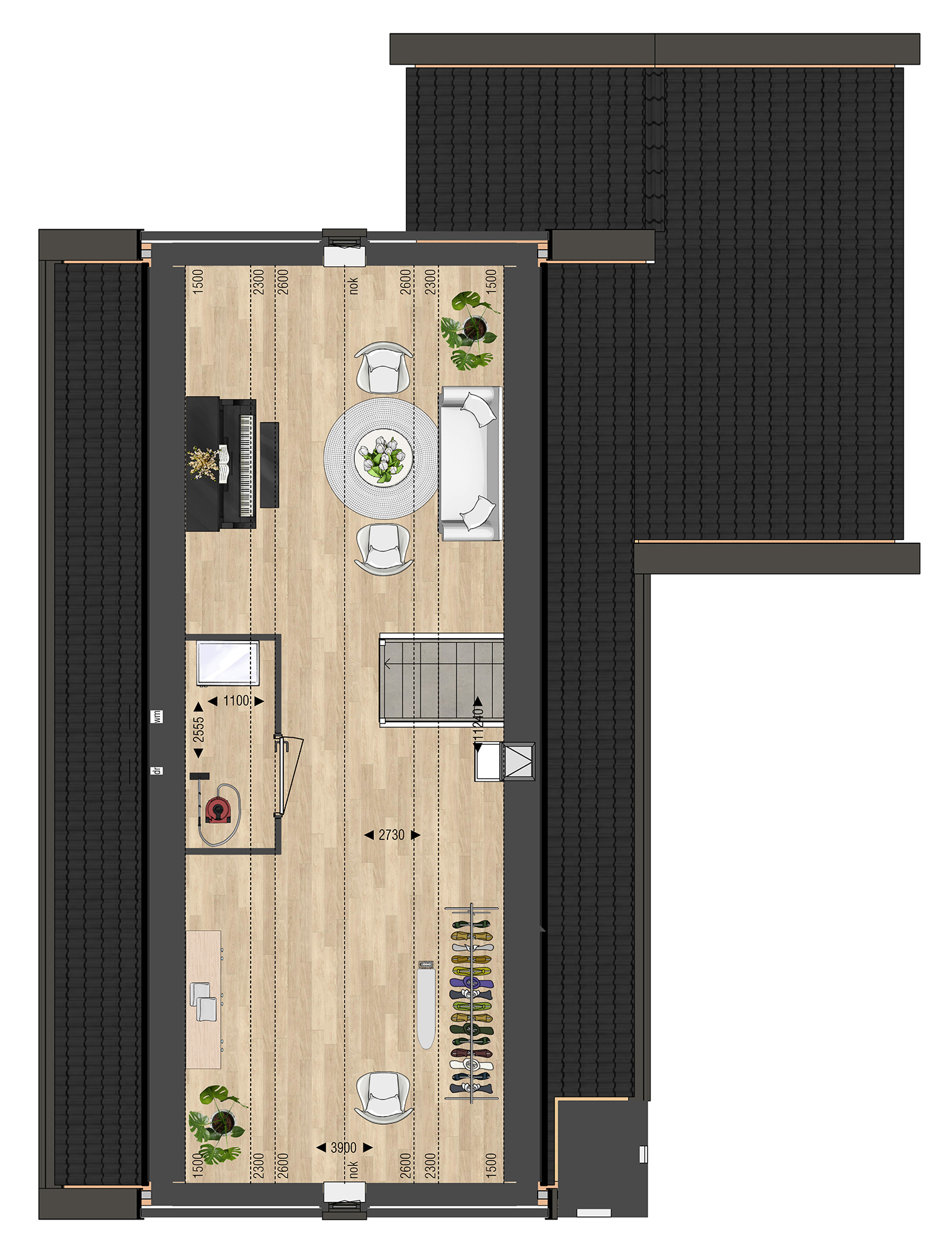Via de charmante zij-entree betreedt u de woning, waar u direct de royale ruimte zult ervaren. Met een woonoppervlak van ca. 175 tot ca. 191 m² biedt deze villa alle mogelijkheden om comfortabel en stijlvol te leven. De ruime woonkamer vormt het kloppend hart van het huis, waar grote ramen zorgen voor een overvloed aan licht en een prachtig uitzicht op de omliggende tuin. De open indeling nodigt uit tot samenzijn, terwijl er voldoende ruimte is voor afzondering en rustmomenten.